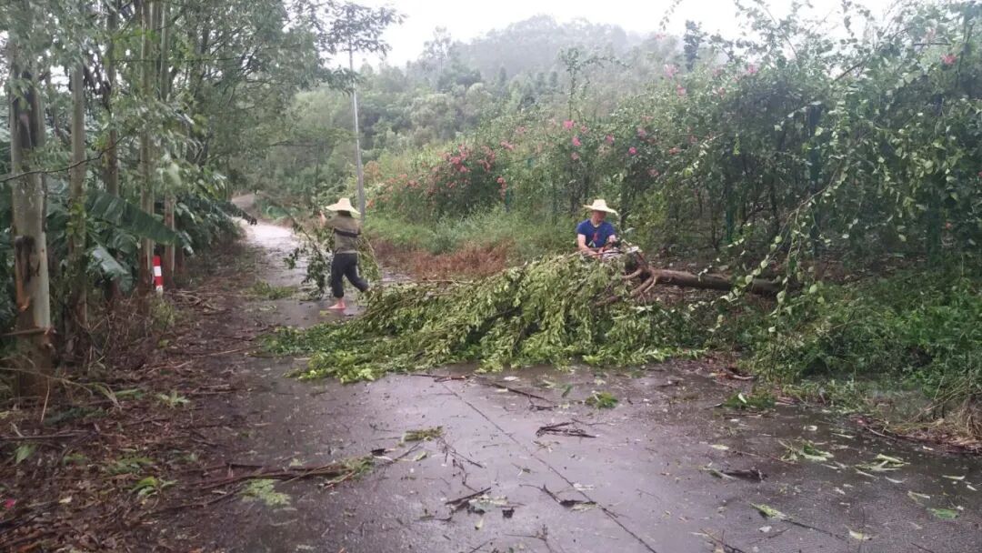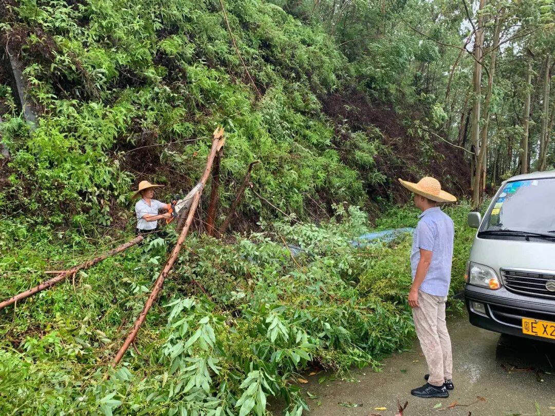 鎮城建和水利辦公室人員為保障群眾的出行安全,到臺風造成的倒樹等路障點進行應急清障,清障路線:白澤線、合塘線、珠坑線以及云良橋,其他路障點也在逐步清理中