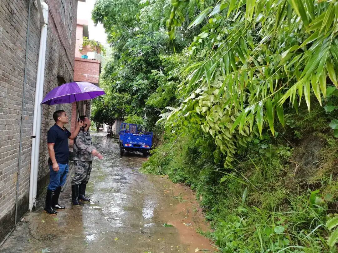 區鄉村振興推進組、小洞村委會、駐村團隊、自然村村委分兩組對轄區進行全面巡查,及時清障、去水、排查危房、入戶走訪留守老人