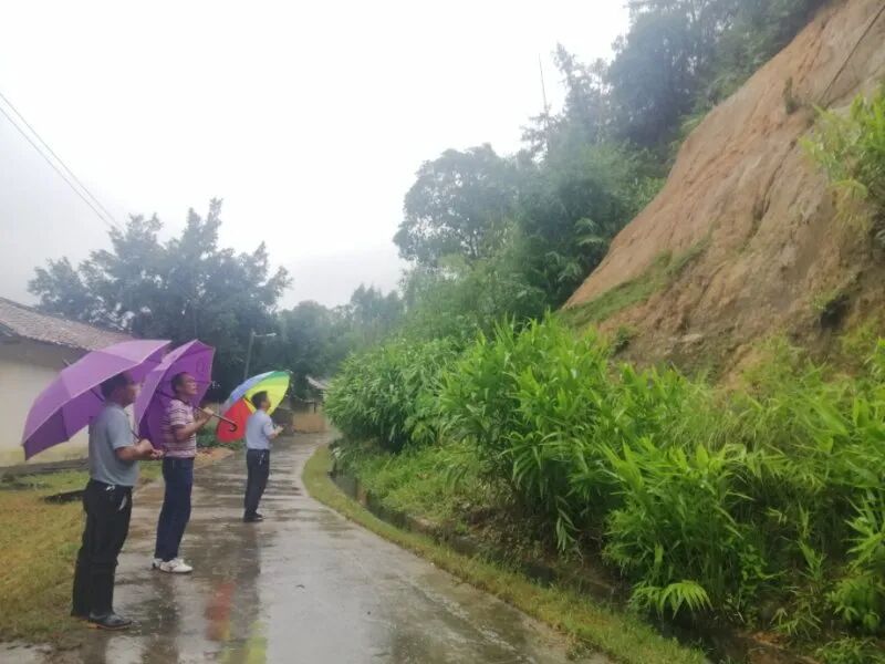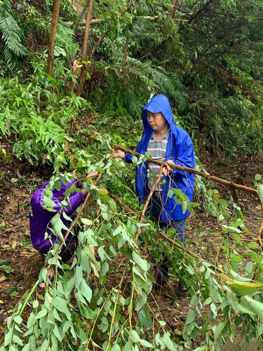 官山村委會干部及駐村團隊到地質災害點巡查,并清理因臺風倒伏的樹木