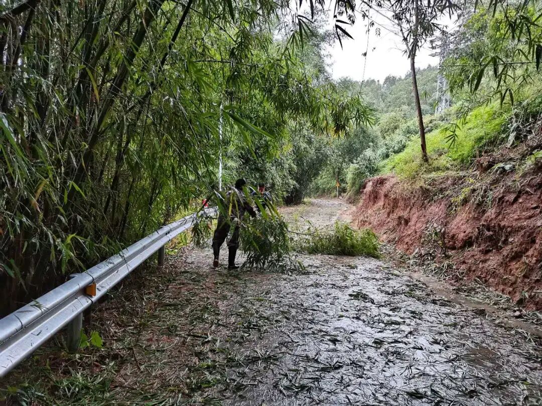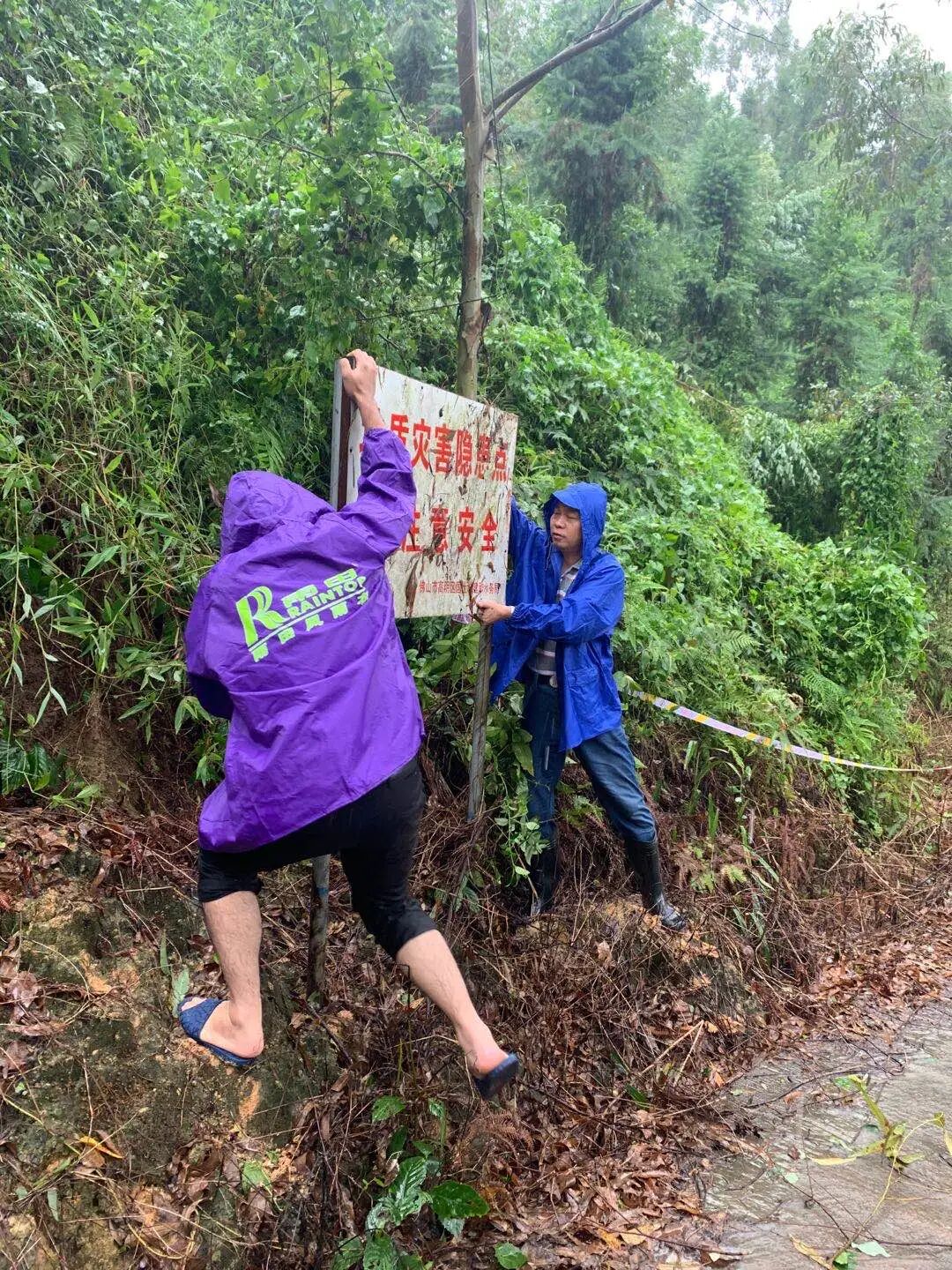水井村駐點團隊和村委會干部清除路障及巡視村中情況