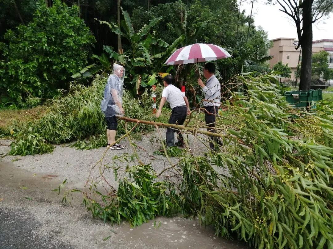 歌樂村委會與掛駐部門干部清理因臺風造成的路障及巡視村中情況