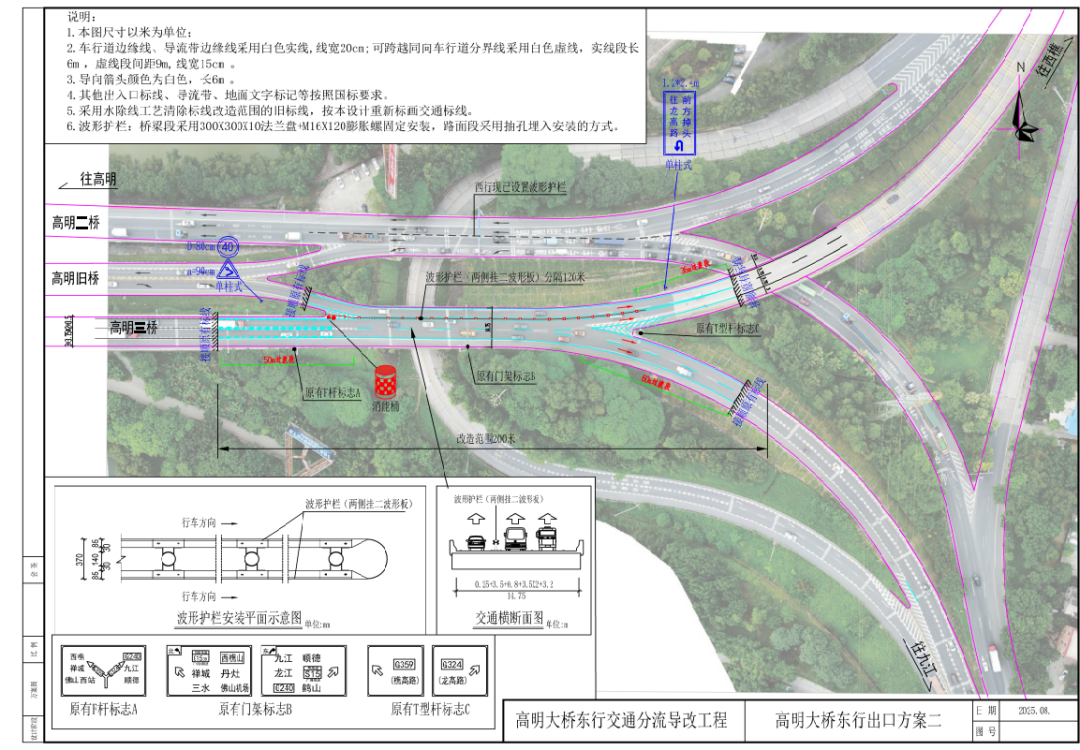 今年5月,我局聯合南海區交通運輸局已完成對樵高立交路段的安全改善工程。近期,為進一步改善高明大橋東出口出行環境,我局聯合南海區交通、交警部門及高明交警部門共同研究,經共同調研并參照入城方向前期改善經驗,推動實施了東出口交通組織安全提升工作。