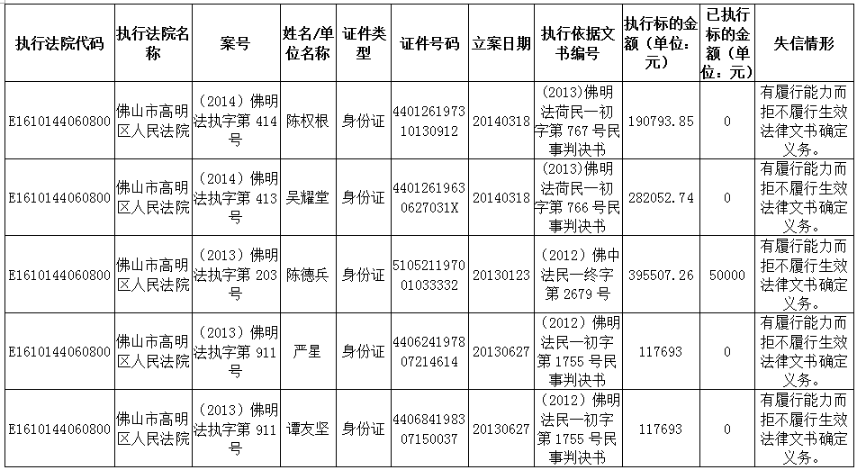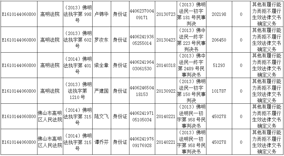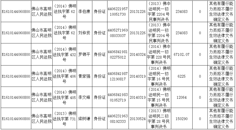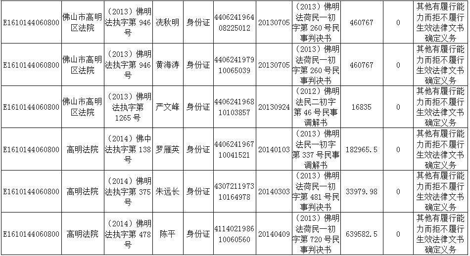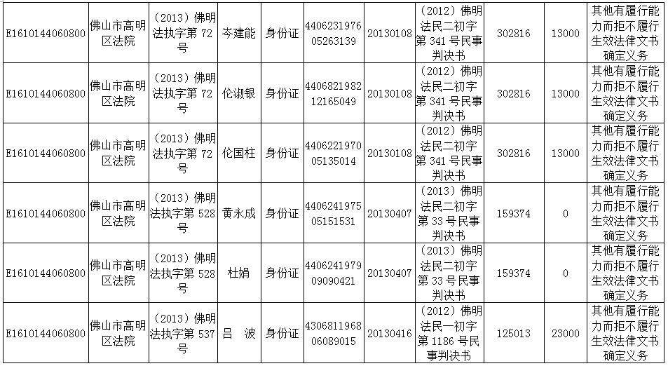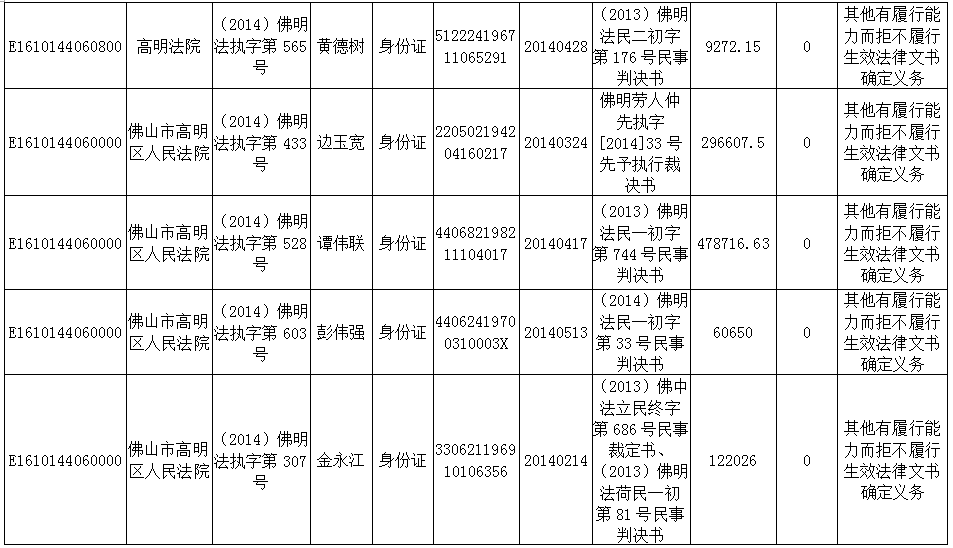 高明區(qū)人民法院曝光“老賴”信息2014年第二期(3-6月總表)