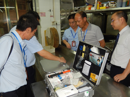 據(jù)悉,此次檢查針對(duì)人流量較大的酒店。在高明區(qū)世紀(jì)星酒店,臧繼炎同志認(rèn)真聽取了企業(yè)負(fù)責(zé)人和安全管理員對(duì)酒店安全生產(chǎn)和食品安全工作的情況介紹,并深入餐廳、烹飪操作間檢查酒店食品安全狀況,對(duì)酒店餐飲衛(wèi)生提出了要求。隨后,向檢查人員了解酒店安全生產(chǎn)制度落實(shí)和隱患排查治理情況,查看了酒店疏散通道的暢通情況,以及應(yīng)急照明燈、疏散指示標(biāo)志、滅火器等安全設(shè)施的配備情況。同時(shí),區(qū)市場監(jiān)管局執(zhí)法人員對(duì)酒店的蔬菜進(jìn)行了快篩快檢。
