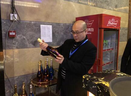 圖為執(zhí)法人員對KTV等酒類經(jīng)營場所的酒類食品進(jìn)行檢查。