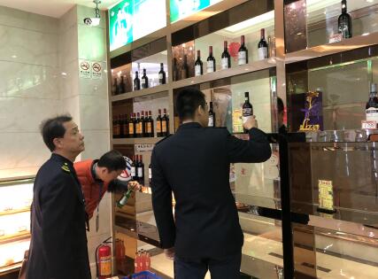 圖為執(zhí)法三大隊(duì)大隊(duì)長楊晨暉同志帶隊(duì)檢查酒類食品。