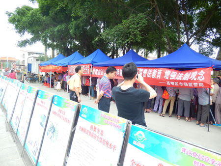 本次進村居法制宣傳活動還邀請了市場監管局更合分局及更合衛計局、人社局等相關職能部門參加。在活動現場,通過擺放宣傳展板、張貼宣傳畫、發放宣傳資料等方式,宣傳食品藥品安全法律法規及相關科普知識。活動期間,接受村民群眾咨詢500余人次,現場解答群眾問題300多條,發放《食品安全法》、《用藥安全知識》、《食品藥品違法生產經營投訴舉報獎勵辦法》、《廣東省食品生產加工小作坊和食品攤販管理條例》等各類宣傳資料共2000多份。