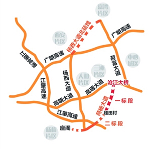 荷楊大道全長11.505公里,設(shè)計時速80公里/時,雙向四~六車道的一級公路,總投資約10.6316億元,屬于佛山市重點交通項目。按照設(shè)計方案,荷楊大道起于荷城中心城區(qū)滄江一橋南側(cè)引道,向西南穿越進入南海區(qū)西岸,再向西延伸分別與江肇高速、楊西大道相交,終點位于楊和鎮(zhèn)座閣村口,連接去往更合鎮(zhèn)方向的縣道。