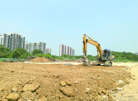 昨日的高明驕陽似火,大德路北延線的施工現場卻沒有停歇。記者在現場看到,一臺挖掘機正揮舞著機械臂夯實路面,而它所處的位置已經是整條線路的中點。在道路最南端,之前影響施工的高壓線網正在處理。在電網下方,地面開鑿出深約一米的溝槽,水泥渠道已經成型?!暗缆废旅娴妮斢凸芤约案浇母邏壕€路已確定保護方案,正在妥善處理,整條道路力爭年內通車。”西江新城服務中心主任趙廣明表示。