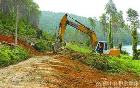 在施工現場,多臺挖掘設備正在平整土地,整個建設過程熱火朝天。據了解,苗潭公路起于明城鎮北部的苗運村馬咀水庫東北側,沿馬咀水庫及潭黎水庫側直至潭朗村機耕路,終于X498明富線潭朗村路段,路線全長5.99km,整條道路預計可于2018年底完工通車。