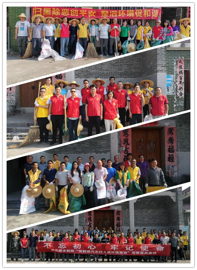 在明城鎮崇步村委會石咀村,我局機關第一黨支部、信息中心黨支部、檢測站黨支部及部分科室、事業單位非黨員職工共60多人,兵分三組,不懼烈日,對照干凈整潔村(居)標準,對每一條巷道的垃圾、雜草、障礙物和溝渠淤泥及漂浮物進行仔細清理,并對重點區域進行集中突破。在明城鎮明陽村委會禾倉村,我局機關第二黨支部、滄江泵站黨支部、海口泵站黨支部聯同村委會干部、當地村民等共計27人,對禾倉村的巷道、溝渠、廢棄房屋、豬舍進行雜草垃圾清理和環境集中整治。黨群志愿者們分工明確,既不怕苦也不怕累更不怕臭,以實際行動,把“不忘初心、牢記使命”主題教育的學習熱情化作服務群眾的干勁和動力。
