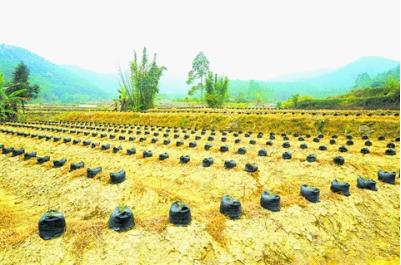 昨日,更合鎮白洞新村的一處粉葛田上,尚未插上用于引藤的竹竿。