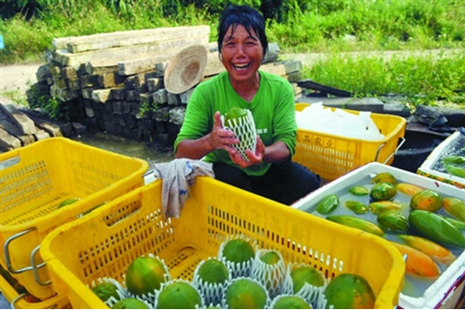 9月,高明明城一菜籃子生產基地工人正在為新鮮木瓜裝貨。(資料圖)/佛山日報記者黎漢沿攝