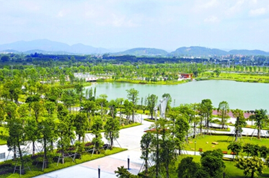 明湖公園一片綠意盎然,周邊空氣質量高。/佛山日報記者黎漢沿攝(資料圖片)