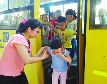 為確保幼兒乘坐校車安全,日前,信鴻中英文幼兒園舉行校車安全演練活動。(資料圖片)