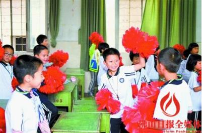 4月26日,荷城街道澤英小學內,學生在課室內排練健身操。/佛山日報記者黎漢沿攝