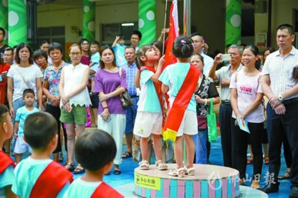 開學首日,高明區機關幼兒園舉行升國旗唱國歌儀式。(資料圖片)
