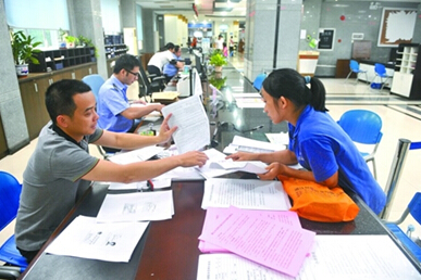 5月26日,市民在高明行政服務中心辦理業務。/佛山日報記者黎漢沿攝