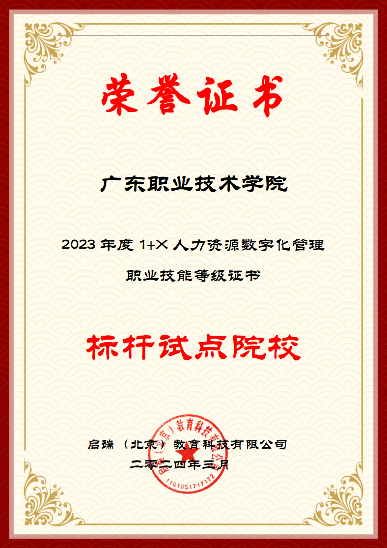 3月28日,廣職院獲得2023年度1+X職業技能等級證書人力資源數字化管理職業技能等級證書“標桿試點院校”榮譽稱號。這表示廣職院繼2022年獲得“優秀試點院校”后,1+X職業技能等級證書組織工作再上一個新臺階。同時,商學院專任教師傅小龍、曾紅武教師,獲得2023年度1+X職業技能等級證書人力資源數字化管理“優秀指導教師”榮譽稱號。姜夢梵,霍谷正老師獲得“優秀考務工作者”稱號。