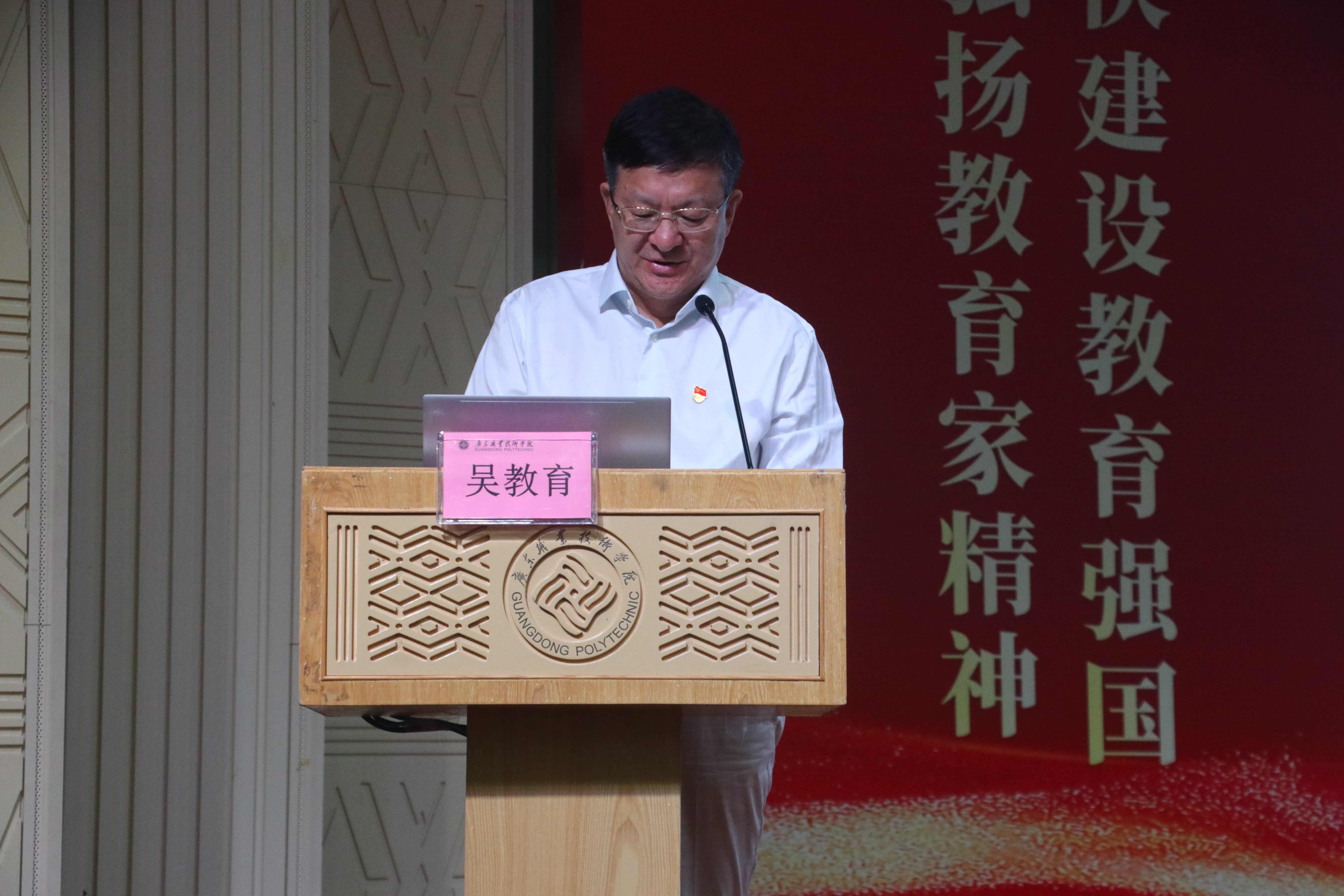 在第40個教師節來臨之際,9月4日下午,廣職院召開“大力弘揚教育家精神,加快建設教育強國”2024年秋季學期開學教職工大會暨慶祝第四十個教師節表彰大會,表彰先進典型,迎接教師節到來。大會在禪城校區大禮堂設主會場,在三校區各設視頻分會場,全體校領導出席大會,全體教職工參加大會。