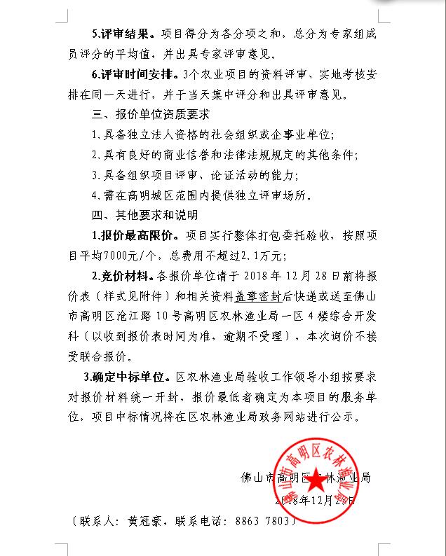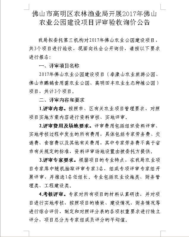 佛山市高明區農林漁業局開展2017年佛山農業公園建設項目評審驗收詢價公告